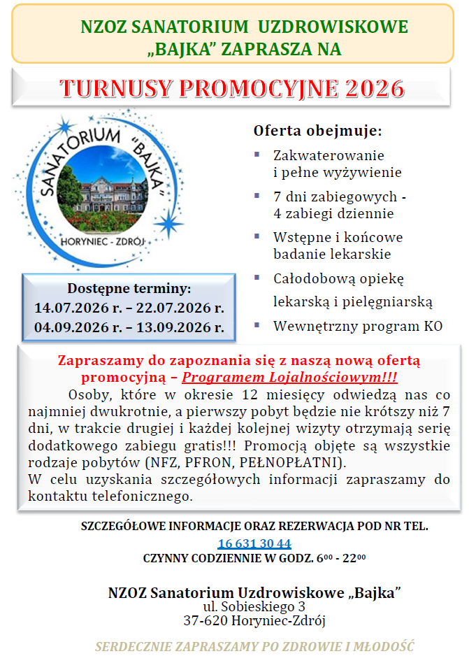 – szczegóły w zakładce „Informator kuracjusza”